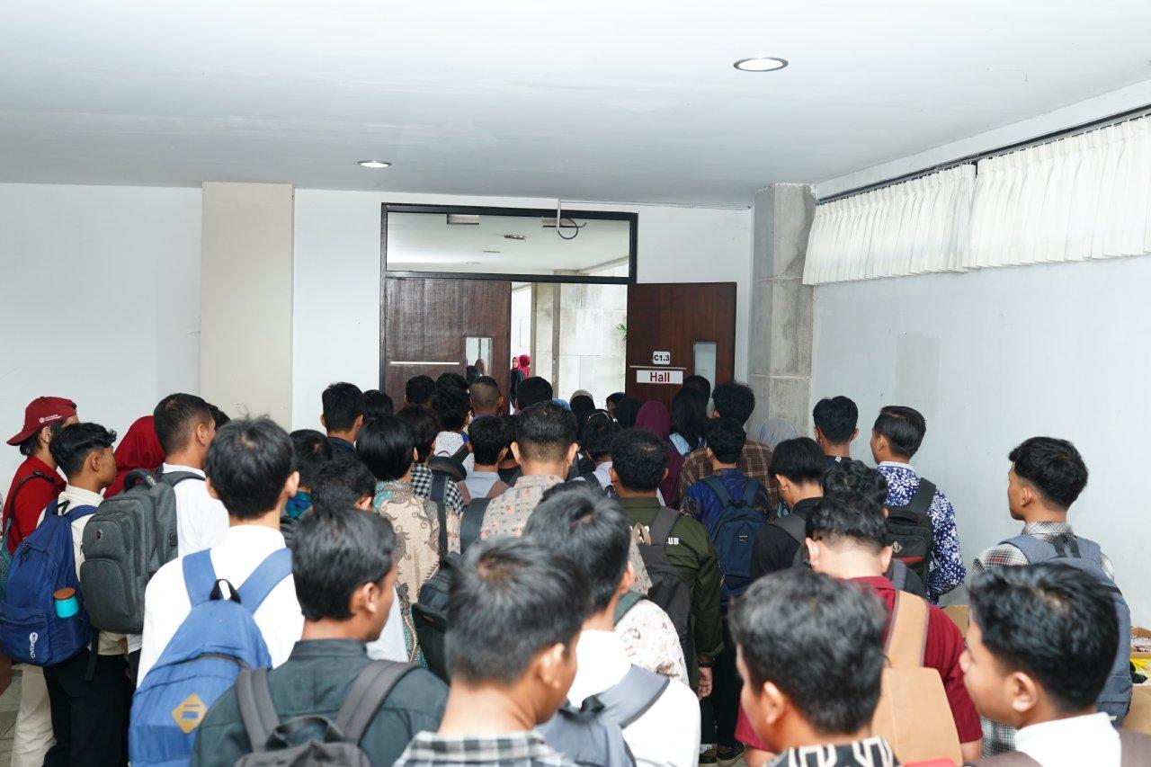 Sejak pagi hari, halaman kampus dipenuhi oleh calon mahasiswa yang datang dengan penuh semangat, sebagian besar diantar oleh keluarga. Sebelum pelaksanaan tes, seluruh peserta dikumpulkan di aula utama untuk mengikuti pembukaan.