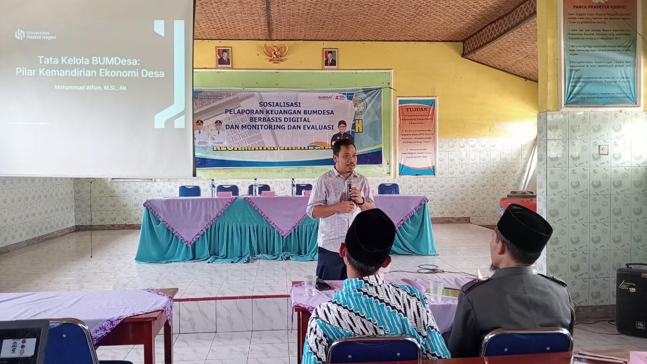 Dosen Harkat Negeri, Mohammad Alfian hadir memberikan edukasi tentang pentingnya tata kelola Badan Usaha Milik Desa (BUMDesa) yang profesional dan berkelanjutan.