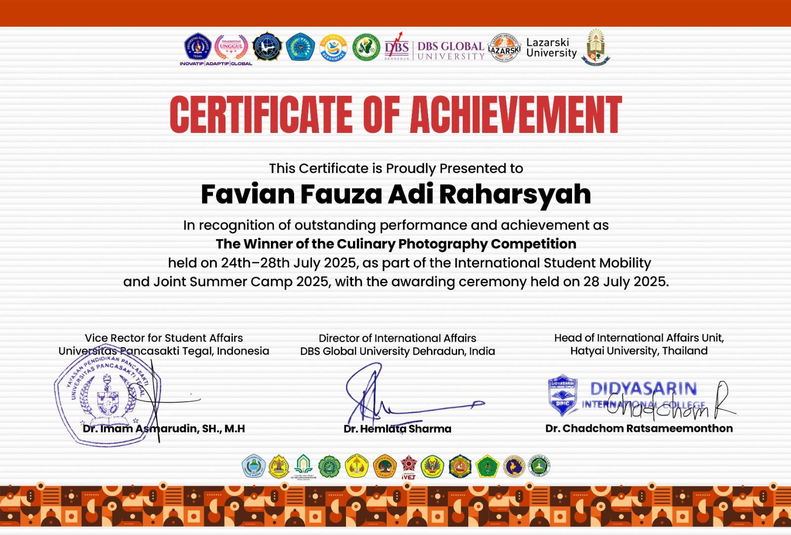 Favian Fauza Adi Raharsyah sukses meraih Juara 1 kategori Culinary Photography, sementara Rizki Arif Ramadani memperoleh gelar 2nd Runner Up Cultural Photography Competition.