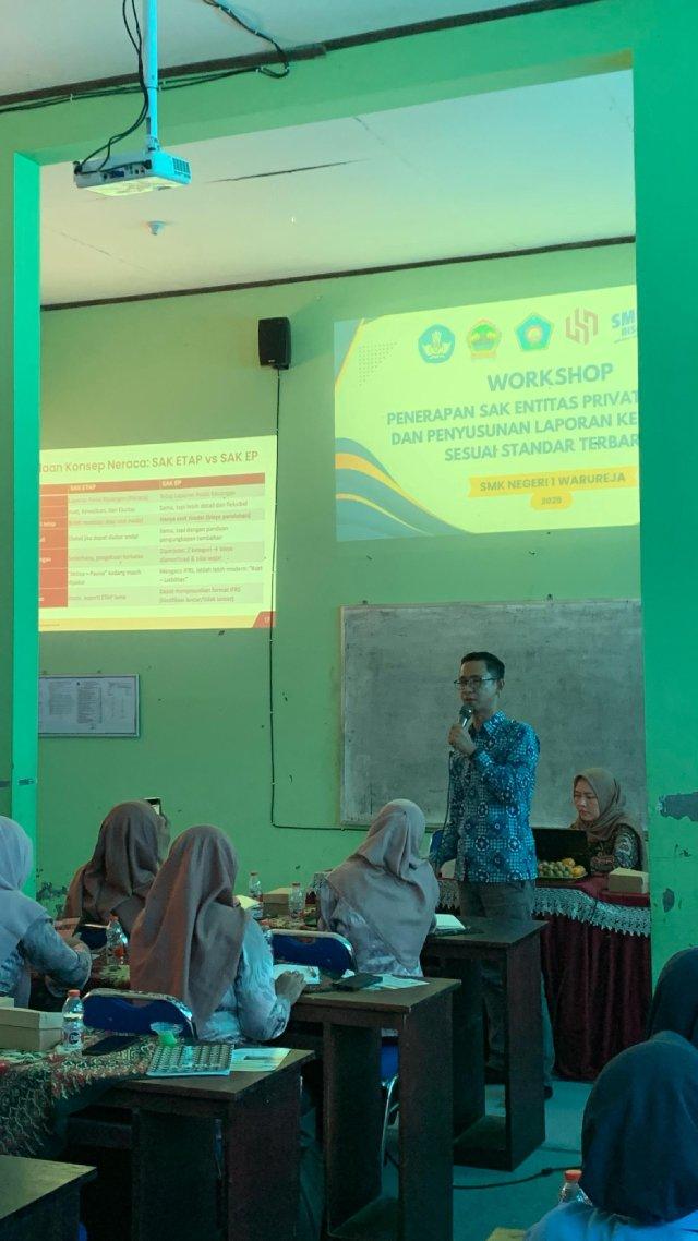 Menyikapi pembaharuan regulasi akuntansi di Indonesia, Program Studi S1 Akuntansi Universitas Harkat Negeri menyelenggarakan Workshop Penerapan SAK Entitas Privat (EP) dan Penyusunan Laporan Keuangan Sesuai Standar Terbaru, di Aula SMK Negeri 1 Warureja pada Kamis (9/10).