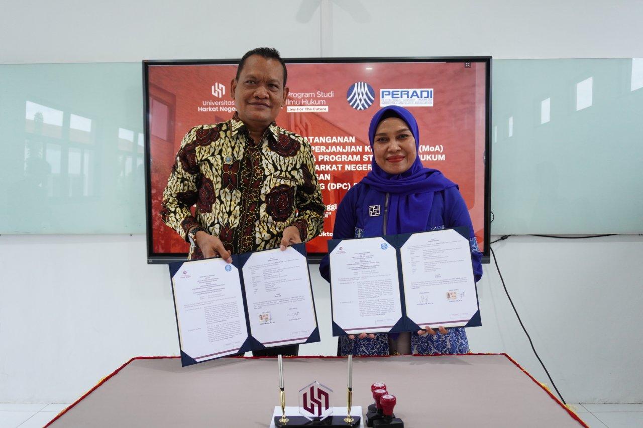 Universitas Harkat Negeri melalui Fakultas Sosial dan Humaniora bersama Program Studi S1 Ilmu Hukum resmi menandatangani Nota Kesepahaman (MoU) dan Perjanjian Kerja Sama (MoA) dengan Dewan Pimpinan Cabang (DPC) Perhimpunan Advokat Indonesia (PERADI) Tegal. Penandatanganan yang tema “Penguatan Tridharma Perguruan Tinggi dalam Bidang Hukum dan Advokasi.” berlangsung di Kampus Pendidikan Universitas Harkat Negeri pada, 24 Oktober 2025.